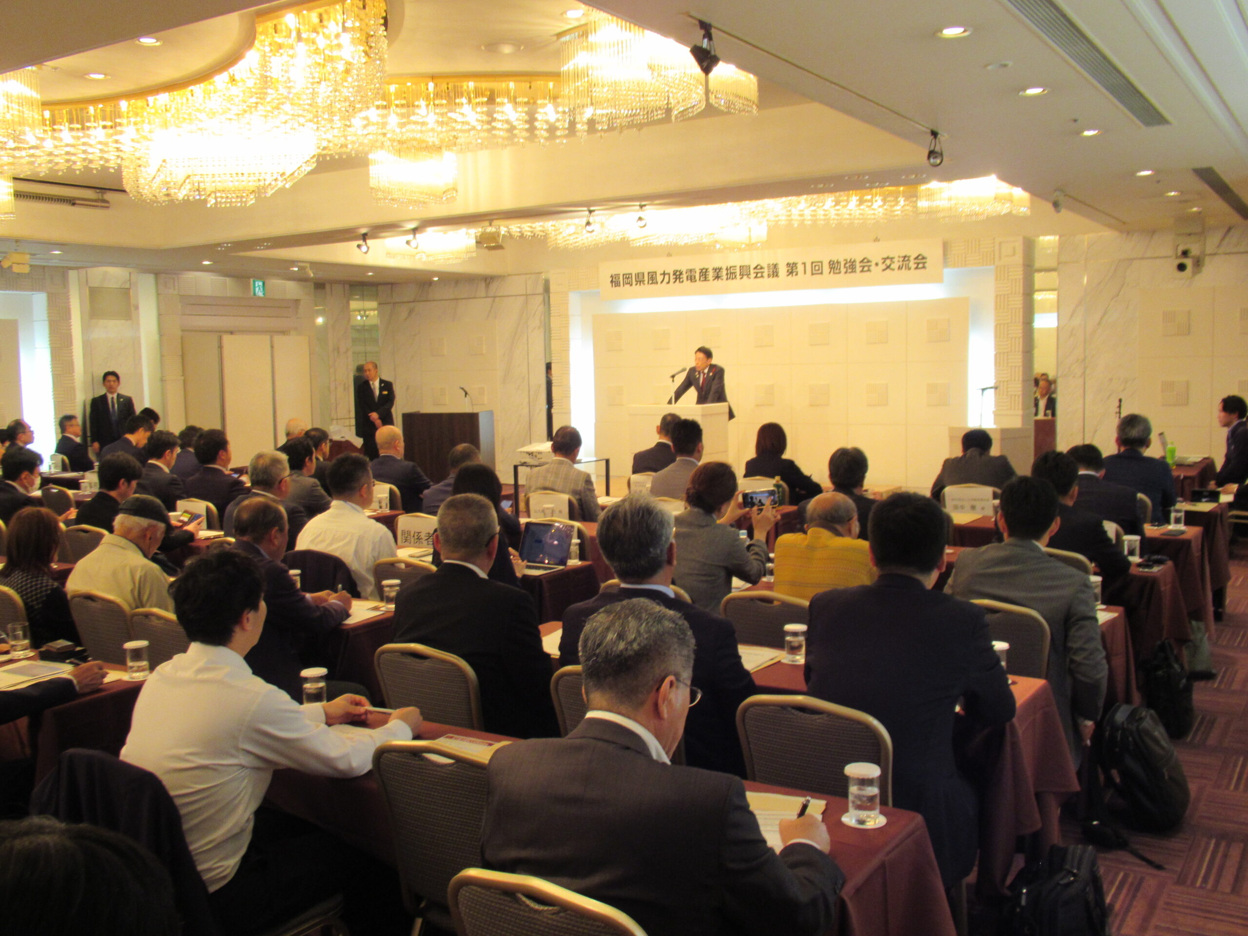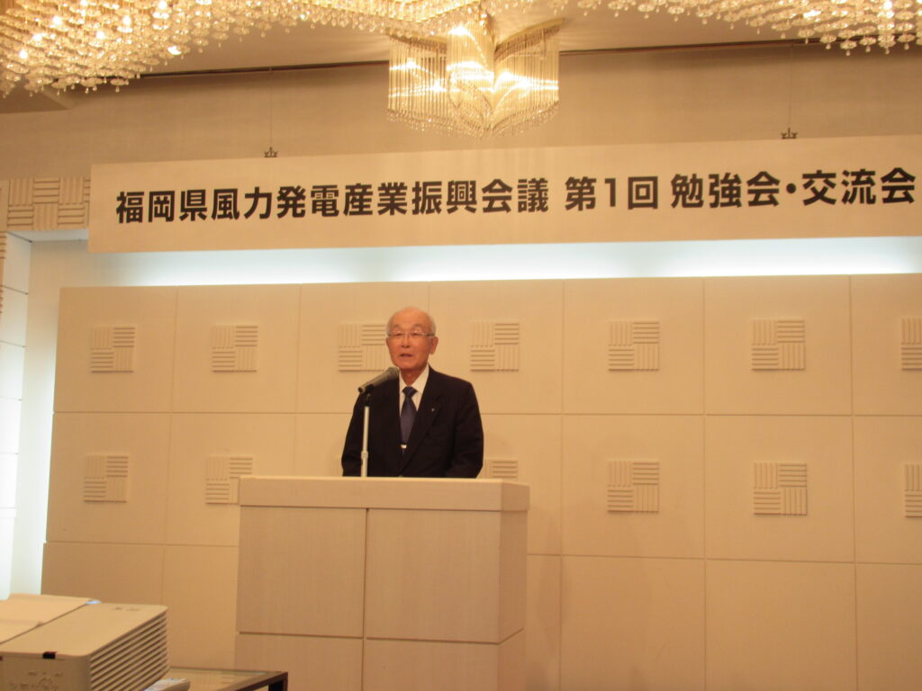 当日は、福岡県から服部知事が出席し、知事は、10月3日に福岡県響灘沖が「有望区域」に整理されたことに触れ、「風力発電産業は非常に裾野が広く、地元企業の参入や雇用の拡大など地域経済への大きな波及効果が期待でき、本県の未来を切り拓く産業政策として非常に重要なものであると考えている。有望区域への格上げを大きな弾みとし、風力発電産業への参入に向けて取り組む事業者の皆さまへのサポートをさらに充実させてまいりたい」と挨拶しました。